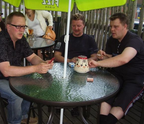 Ennen keikkaa juttu tuokio sanoittaja mestari Markku Koskisen kanssa tulevista biiseistä. |